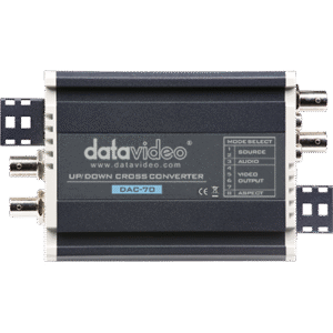 The DAC-70 from Datavideo is designed to provide flexibility in professional video environments. It allows users to convert video signals from VGA, HDMI, and SD/HD/3G-SDI inputs to 3G/HD/SD-SDI and HDMI outputs, with an additional SDI loop-through option for monitoring or chaining signals. It supports both embedded audio (up to 8 channels for SDI/HDMI) and analog stereo audio inputs, with outputs maintaining the embedded audio or allowing replacement via RCA inputs.