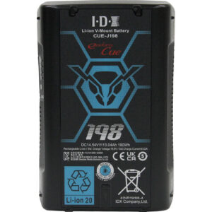 190Wh (14.54V / 13.07Ah) capacity, capable of handling high current loads up to 13.9A or 156W. Features one built-in unregulated D-Tap port rated for a maximum 80W load to power accessories, integrated safeguards against over-charge, over-discharge, and over-current. Equipped with a 4-LED power indicator to monitor remaining capacity at a glance. Fully compatible with all IDX ENDURA V-Mount chargers and accessories.